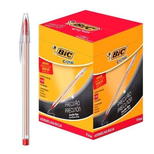 Caneta Esferográfica Bic Cristal Intenso 1,6mm Vermelha – 25 Unidades