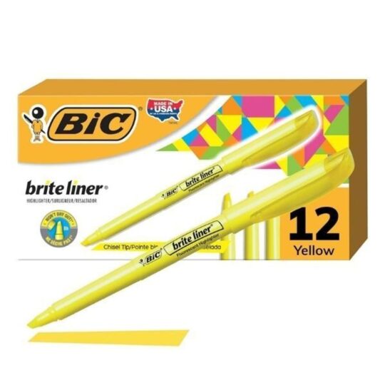 Pincel Marca Texto Amarelo Brite Line com 12 unidades – Bic