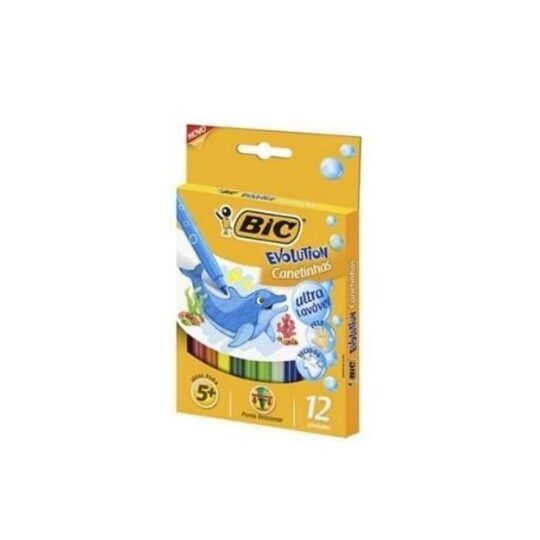 Caneta Hidrográfica 12 Cores Kid Couleur com 12 Unidades – Bic