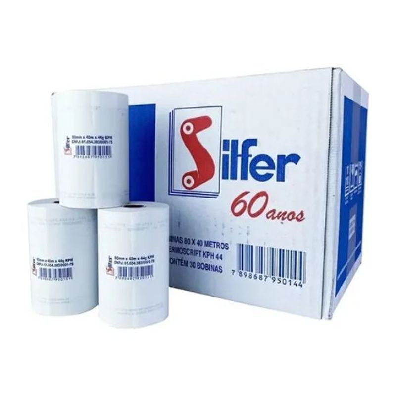 Bobina Térmica 80mm x 40m Branca com Tubete – Silfer