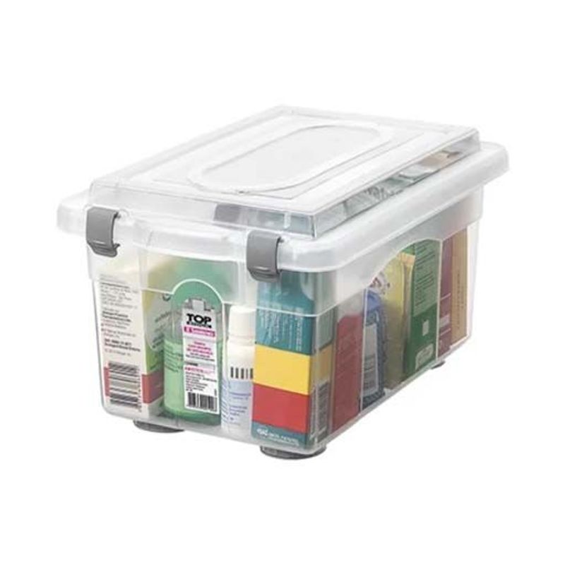Caixa organizadora de 4,3 L com tampa, perfeita para armazenar objetos pequenos de forma prática e segura. Produto Sanremo, ideal para organização em casa ou no escritório.