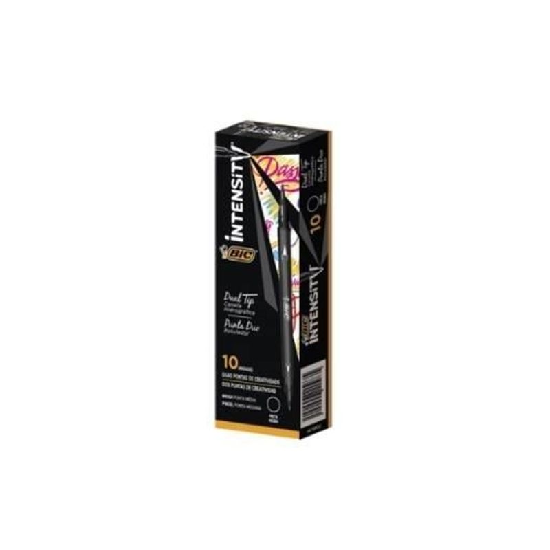 Caneta Hidrográfica Intensity Dual 1,0/2,5mm Preto com 10 unidades – Bic
