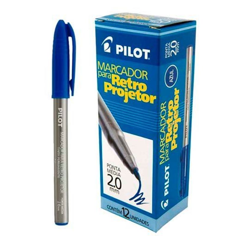 Caneta Pilot para retroprojetor, ponta 2.0 mm, cor azul, ideal para apresentações e transparências.