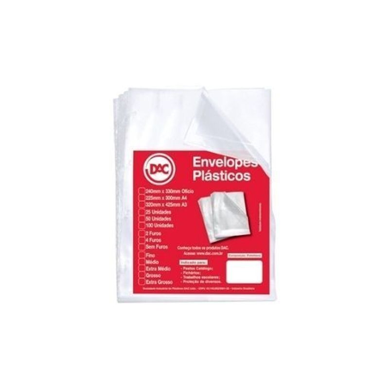 Envelope Plástico Ofício 0,12mm 4 furos – Dac