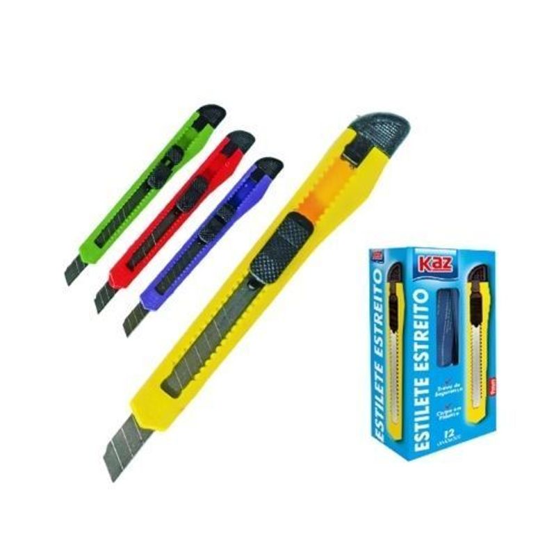 O Estilete Estreito da Kaz é ideal para cortes precisos e detalhados em papel, cartolina, plásticos finos, entre outros materiais. Possui corpo leve e anatômico, com lâmina retrátil de aço e sistema de trava para maior segurança durante o uso. É perfeito para uso escolar, profissional e artesanal. Design compacto e funcional, facilita o transporte e armazenamento.