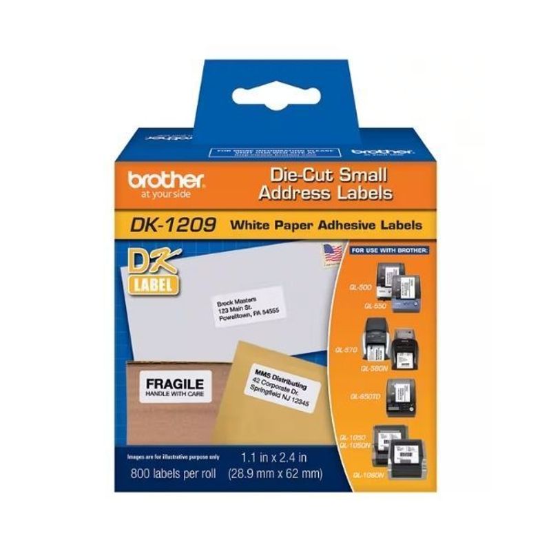 A Etiqueta DK1209 da Brother é ideal para impressão térmica direta, dispensando uso de tinta ou toner. Com dimensões de 29mm de largura por 62mm de comprimento, oferece excelente qualidade e aderência para organização, identificação de produtos, arquivos e logística. Compatível com diversas impressoras térmicas Brother da linha DK, proporciona etiquetas duráveis e com impressão nítida. Embalagem contendo rolo com etiquetas pré-cortadas.