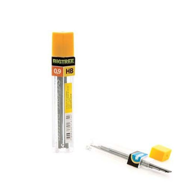 Grafite de 0,9mm dureza HB, ideal para escrita suave e traços precisos. Compatível com Lápiseiras de mesma espessura. Embalagem segura. Marca Bigtree.