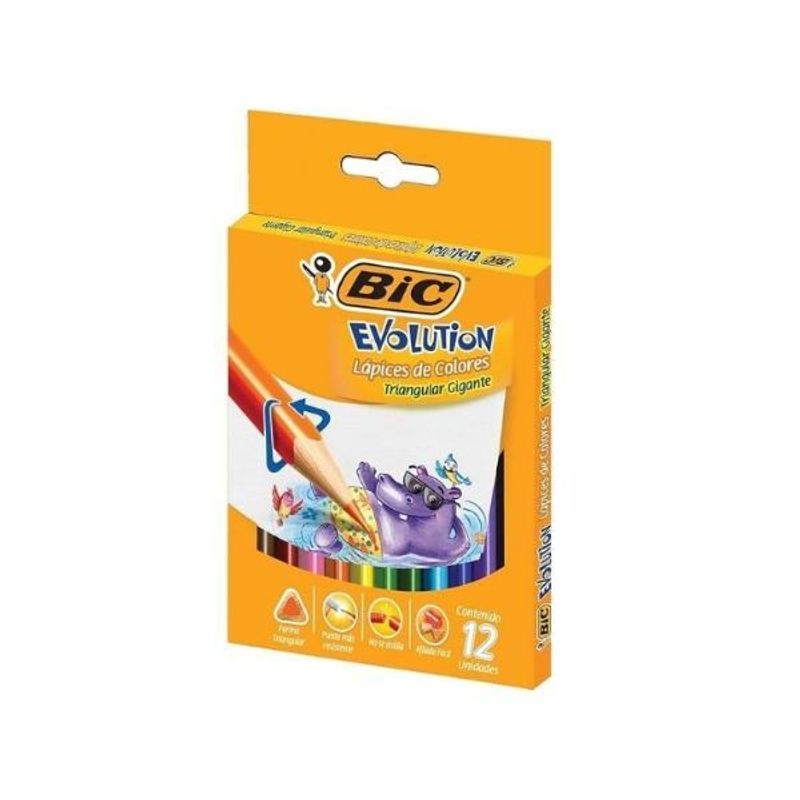 Informações constantes do selo, conforme Portaria Inmetro Nº 333/2012: Segurança, Compulsório, Registro 009900/2022, OCP0006, INMETRO.O lápis de cor Evolution Triangular Gigante da Bic é ideal para mãos pequenas e grandes ideias. Desenvolvido com resina sintética, é mais resistente e seguro, pois não lasca. Possui corpo triangular ergonômico que proporciona melhor pegada e mais conforto durante o uso. Com 12 cores vivas e cobertura excelente, é perfeito para atividades escolares, artísticas e recreativas.