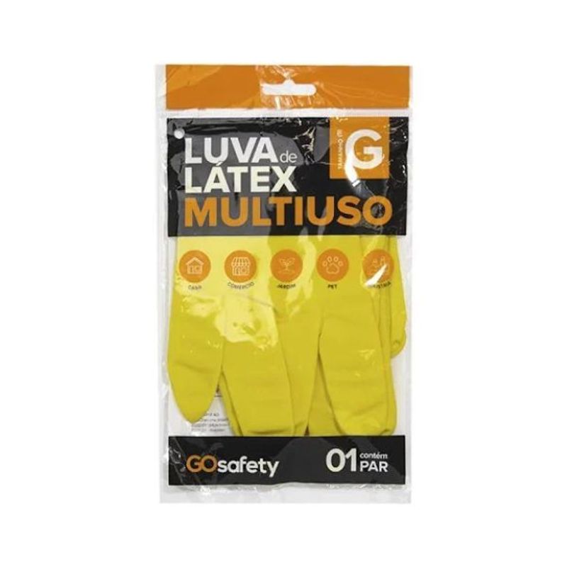 Luva de borracha da marca Go Safety, na cor amarela e tamanho G (grande). Desenvolvida para oferecer proteção contra agentes químicos, abrasivos e sujeiras, garantindo segurança e conforto nas mãos durante trabalhos industriais, limpeza, jardinagem e outras atividades que exigem proteção manual. Possui acabamento antiderrapante para melhor aderência.