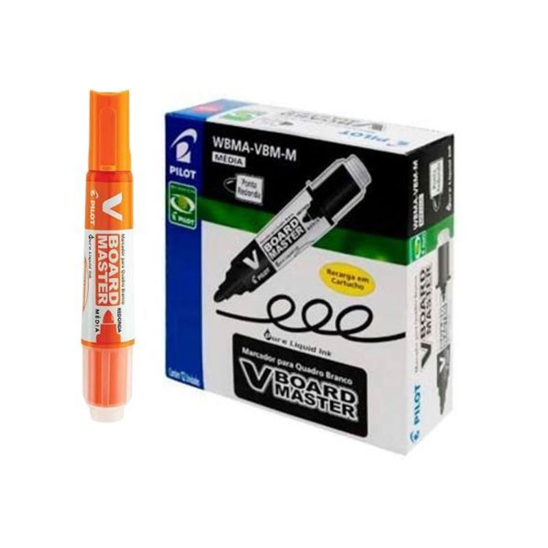 O marcador V Board Master foi especialmente desenvolvido com componentes de última tecnologia japonesa para o uso em quadro branco. Possui ponta macia que não danifica o quadro e tinta apaga facilmente. O seu constante fluxo de tinta líquida conta com o sistema que permite a escrita imediata, sem a necessidade de agitar ou bombear, proporcionando uma excelente qualidade de uso do começo ao fim. Cor: Laranja.