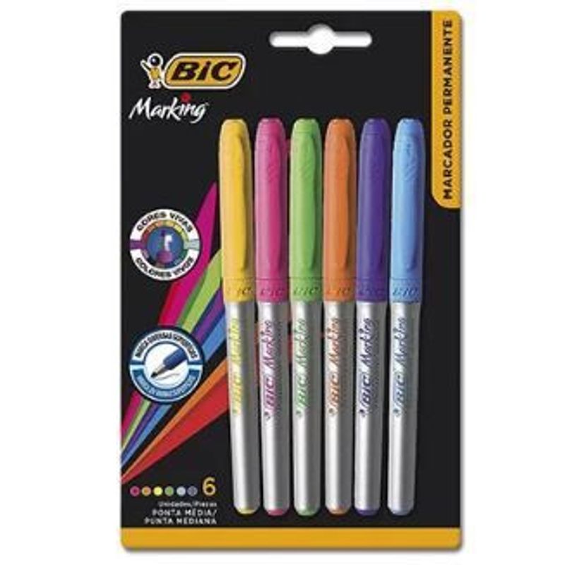 Marcador Permamente ponta média 1,1mm com 6 Cores-Bic