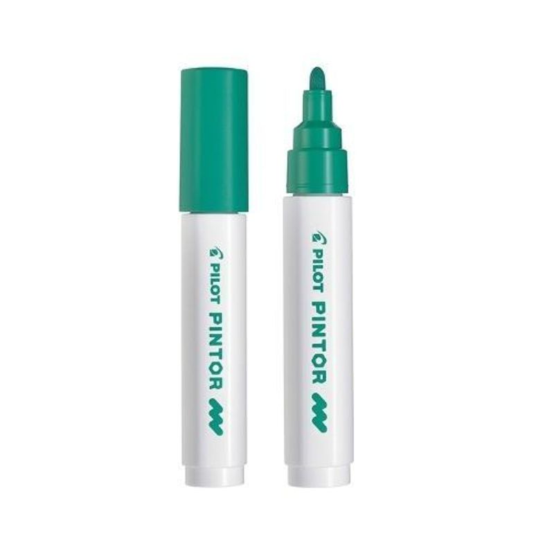 Este marcador Pilot Pintor com ponta média 1.4 mm é ideal para dar vida aos seus projetos. A cor verde oferece um tom vibrante e cobertura eficaz, ideal para arte, personalização e escrita. Uso indicado em superfícies variadas. Embalagem com 6 unidades.