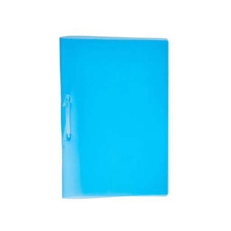 Pasta transparente com grampo trilho, tamanho A4, ideal para organizar documentos com segurança. Cor azul vibrante.