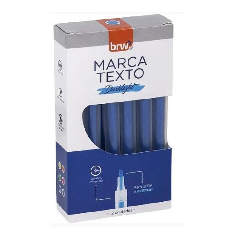 Conjunto com 12 pincéis marca texto Dashlight na cor azul, ideais para destacar informações importantes em textos, anotações e documentos. Com ponta chanfrada para traços largos e precisos, a tinta é de secagem rápida e alta resistência ao desbotamento. Perfeito para uso escolar, escritório e profissional, proporcionando excelente visibilidade e organização dos conteúdos destacados.