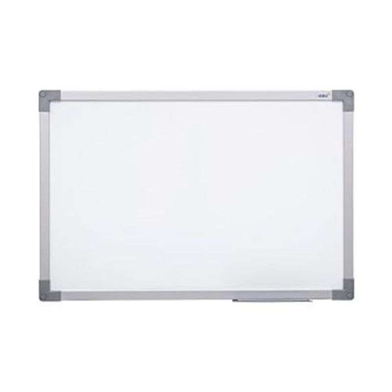 Quadro branco de alta qualidade com moldura em alumínio resistente, ideal para uso em escritórios, salas de aula, reuniões e apresentações. A superfície lisa permite escrita com canetas para quadro branco, que podem ser facilmente apagadas sem deixar marcas. Produto leve, durável e de fácil instalação, perfeito para ambientes corporativos e educacionais. Medidas de 60 cm de altura por 90 cm de largura, proporcionando espaço suficiente para anotações e desenhos.