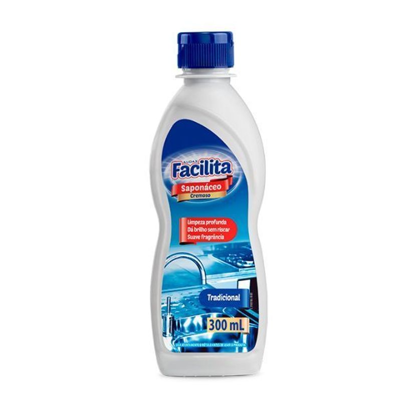 O saponáceo cremoso Facilita de 300ml é ideal para remoção de sujeiras difíceis em superfícies como pias, fogões, bancadas, azulejos e inox. Sua fórmula eficiente limpa profundamente sem riscar, proporcionando brilho e aspecto renovado. Pode ser utilizado tanto em ambientes domésticos quanto comerciais, sendo uma solução prática e econômica para a limpeza do dia a dia.